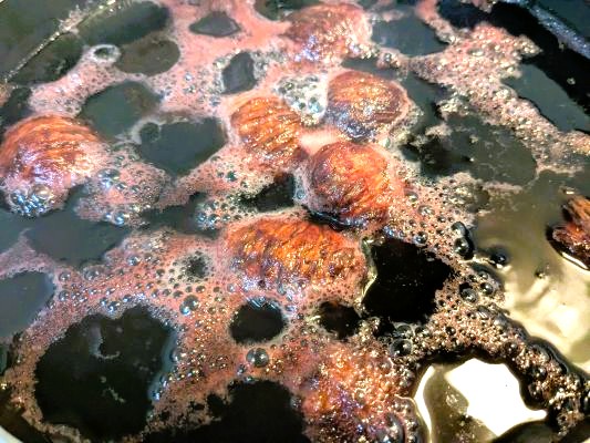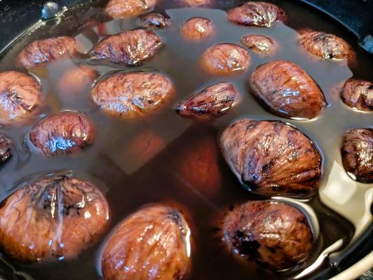 鬼皮をむいた後は、レシピを参考にしてアク抜きで数回茹でこぼし、最後に砂糖を加えて煮込んで完成です。