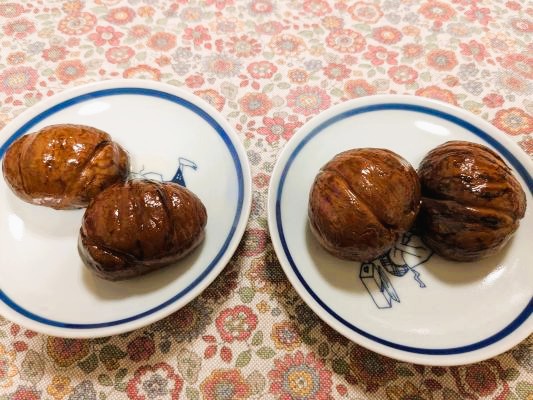 今年も鬼皮むきにはだいぶ苦戦して、ちょいちょい渋皮が剥がれてしまいましたが、やっぱり今年も心配していたほど煮崩れたりはしなくて、まあまあ綺麗に仕上がってくれたのではないかと思いました。