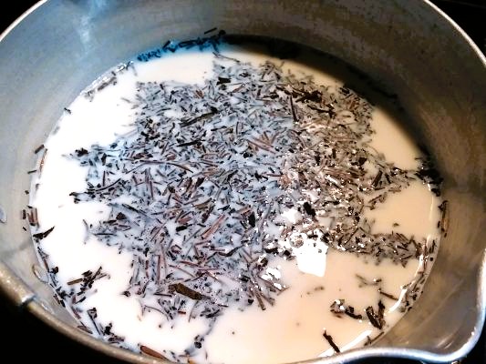 すると、多くの方のレシピで「ほうじ茶は鍋で軽く焙じて香りを出してから、牛乳と一緒に煮だすようにゆっくり牛乳を温めた方がイイ」と書いてあったので、私もそのようにしてみました。