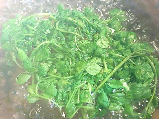 七草の葉の部分をサッと湯通しして、冷水で冷ましてから水気を絞り。