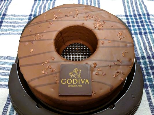 そして今年ももちろん?私も少しお味見させていただきましたが、色が色だけにバームクーヘンらしい年輪のような模様が見えなくて、最近はかなりしっとりしたバームクーヘンが多いけどGODIVAのバームクーヘンは水分少なめな感じなので、ガトーショコラのチョコレートコーティングみたいな感じでした。