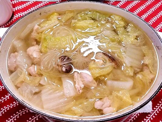 扁炉(ピエンロー)は中国に滞在していた新聞記者からレシピを教わって以来、何十年も毎年欠かさず作り続けているそうで、白菜・豚バラ肉・鶏肉・春雨を干し椎茸の戻し汁で煮る中国の絶品鍋です。
