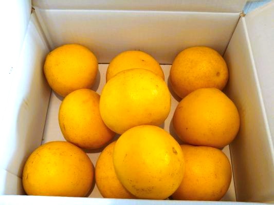 それにしても、柑橘類の果物の中でも文旦は1個がかなり大きい方なので、それがダンボールに10個も入っているとゴロンゴロン感が凄くて(笑)、かなりの迫力です。