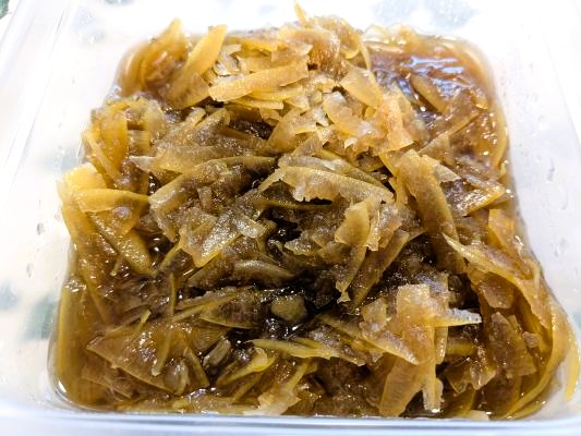 ごぼうのきんぴら?切り干し大根の煮物?に見えなくもなく。