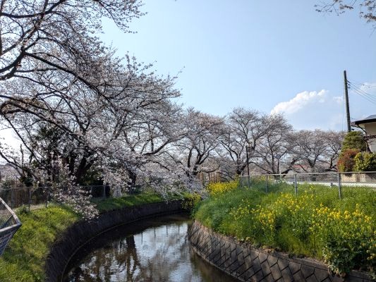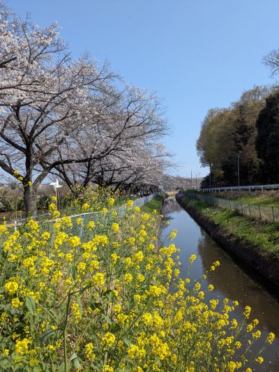 用水路沿いには菜の花なども咲いていて、可愛らしい景色です。