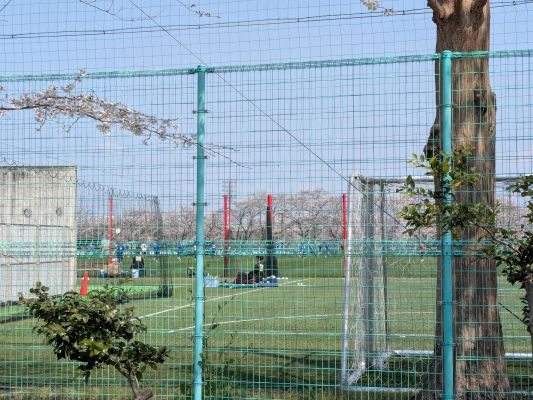 桜回廊散歩スタート早々に、浦和レッズのトレーニング場の横を通りました。