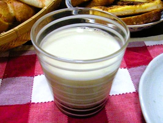 豆乳にパイナップルジュースを混ぜると、ヨーグルトっぽい感じになります。
