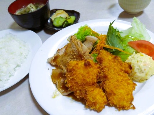夫は日替わりランチ (白身魚フライと生姜焼き)